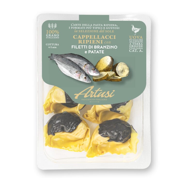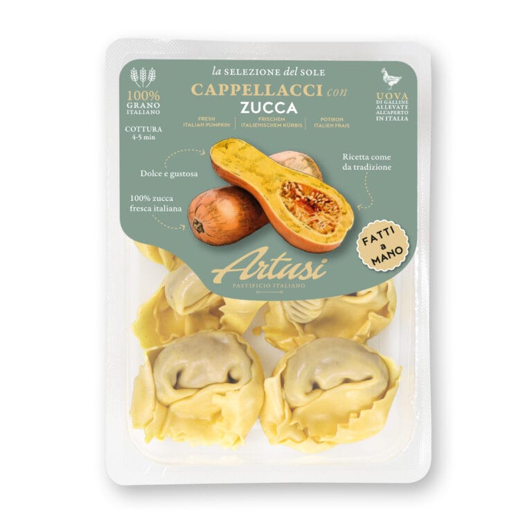 For the line of sun we use only raw materials and ingredients from different italian regions. All cappellacci are handmade. short pasta, tagliolini (thin tagliatelle) and bigoli, are drawn in bronze. no product contains any preservatives, thickeners and hydrogenated fats.